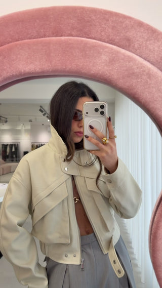 Todo forrado e com detalhes de molas na gola e na parte de baixo. A modelo vestiu tamanho SM.