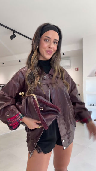 Biker reversível da marca Mochy. Com bolsos na frente e fecho.