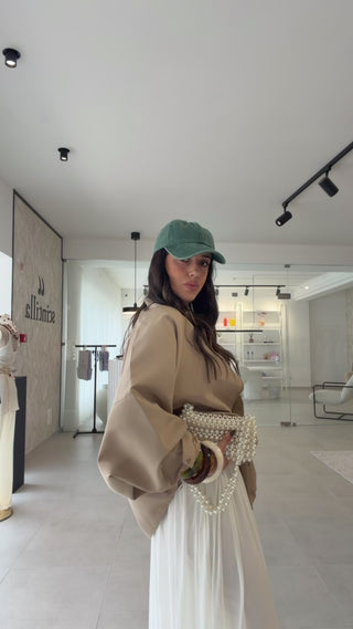 Bomber estilo oversize, todo forrado. Com bolsos na frente.