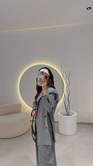 Blazer da marca Lumina, com ombros estruturados. Pormenor de corte na lateral.